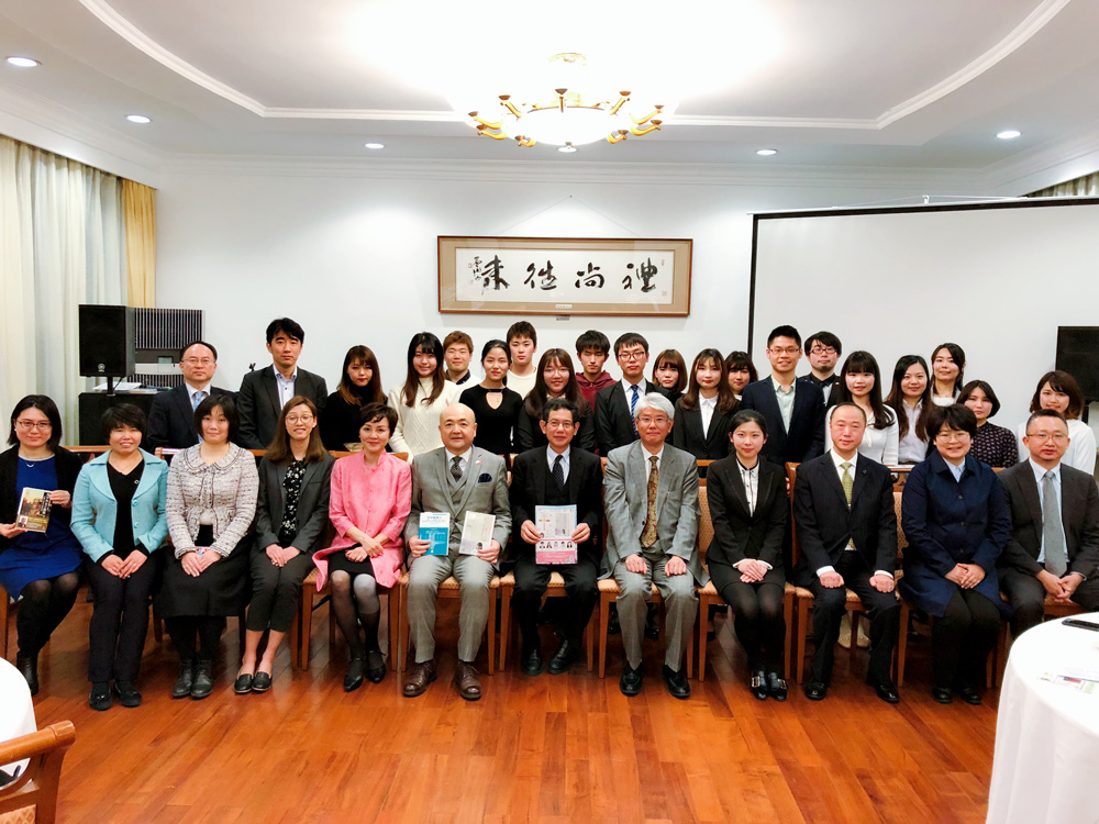 (片山和之总领事和段跃中社长与我院学子交流合影)