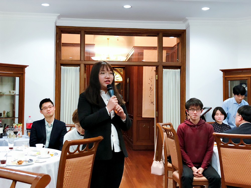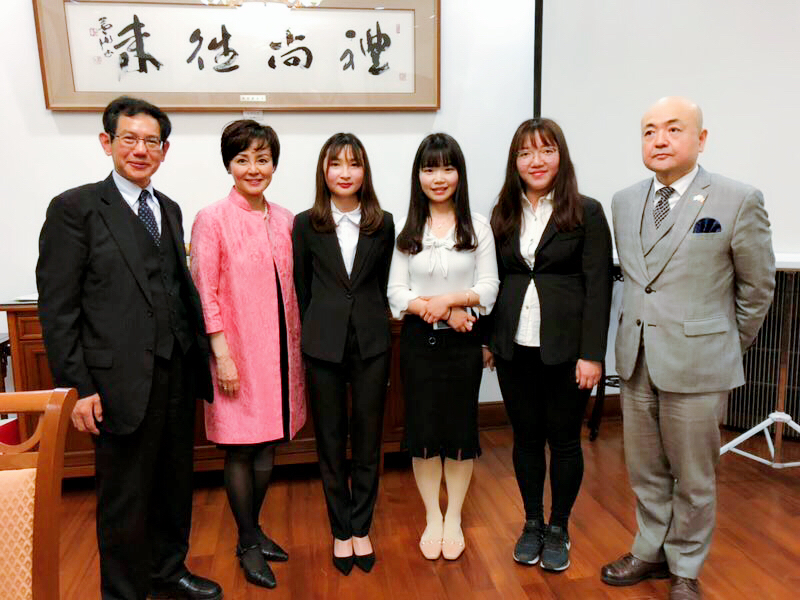 近三年,我院日语专业竞赛佳绩不断,仅参加“中国人日语作文大赛”而言,年年捧得“优秀指导教师奖”,共有5位同学荣获三等奖,10名同学获佳作奖,其中有两位同学分别获得了480万日元的财团奖学金。马滢哲和赵淑婷两位同学表示,作为嘉兴学院日语专业的学生,能受邀参加总领事举办的交流会,倍感意外,十分荣幸。这次在领事馆的交流,让她们开阔了眼界,也增加了努力学习日语的信心。她们也真心希望有更多的同学加入到日语作文大赛来,加入到日语的专业竞赛来,在竞赛中锻炼自己,在实践中提升自己的日语应用能力。