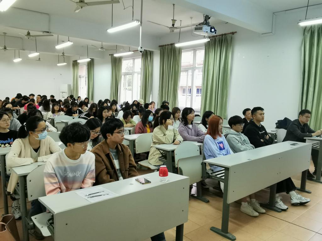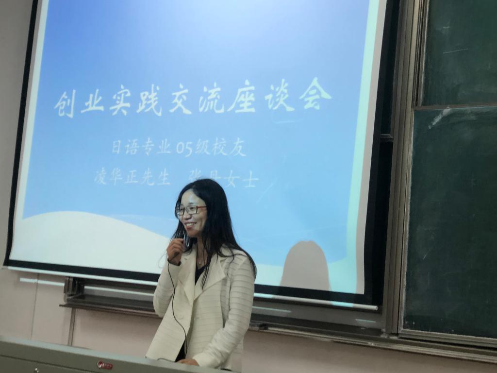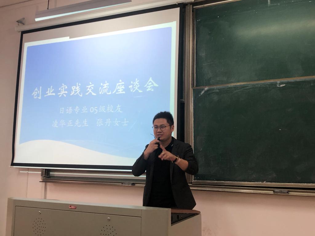 10月17日,天堂资源最新在线在教一303举行日语专业校友创业实践交流会,日语专业05级的两位校友向在座的同学们分享了他们创业实践经历。交流会由日语系教研室主任朱京哲老师主持,日语系主任刘韵超老师、天堂资源最新在线教务办主任王玉娇老师出席,来自全院日语专业各年级的100余名学生聆听了讲座。