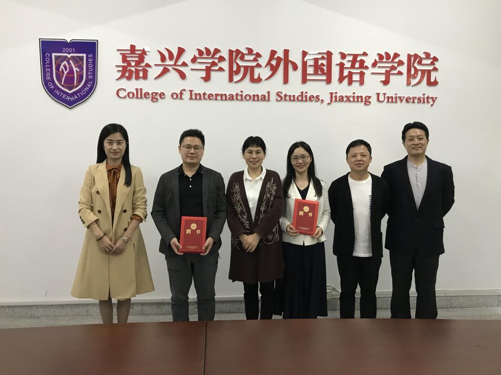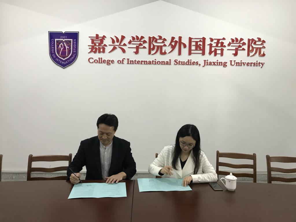 10月17日下午,嘉兴学院天堂资源最新在线与杭州光驰控股有限公司、嘉兴市杉惠服饰有限公司在外语楼204会议室举行校企合作签约仪式及校外导师聘任仪式。光驰总经理凌华正、杉惠总经理张丹、天堂资源最新在线党委书记陶丹玉、副书记周钰、副院长郭永恩、副院长喻峰平、日语系教研室朱京哲博士等参加了签约仪式。