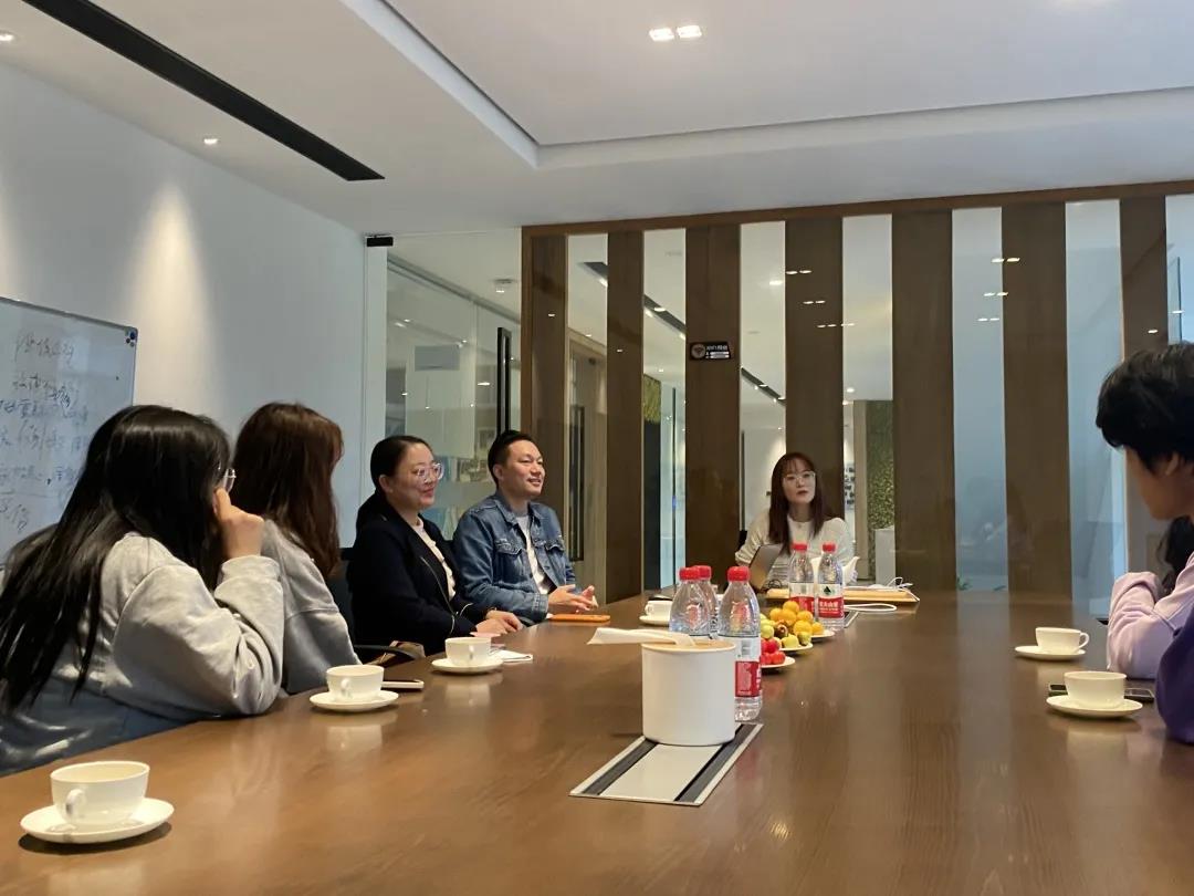 随后,吴经理安排同学们到会客室与外贸业务主管进行交流。吴经理先向同学们介绍了Mindo的企业文化、发展状况、发展规划以及企业的用人标准和面试技巧。在随后的座谈环节,同学们也纷纷结合个人感兴趣的问题发问,吴经理和业务主管也耐心地回答同学们的问题,并分享个人的职场经历和职场感悟指导同学们规划自己的职业生涯。