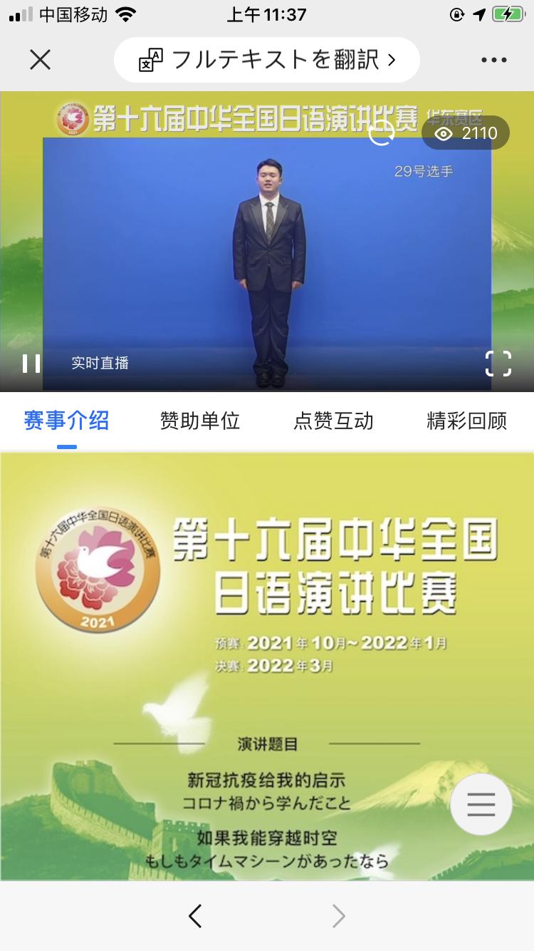 2022年刚到,捷报传来,日语专业学子张锦超在1月8日举办“第十六届中华全国日语演讲比赛”华东赛区比赛中喜获三等奖。