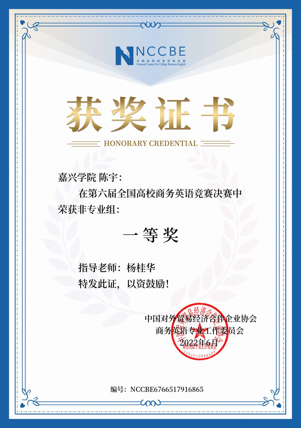 据了解,学院从今年2月份就开始竞赛的准备工作。从学院立项学科竞赛项目到赛点学校的申请再到后面发动组织学生参赛,学院领导、商务英语课程组和学院老师们都给予了热情鼓励和大力协助。具体负责竞赛组织和指导的大外部杨桂华和路晓琴两位老师为大赛投入了大量的时间和精力。她们鼓励学生树立信心、积极参赛,为同学们收集竞赛练习题、答疑解惑。在她们的共同努力下,同学们踊跃报名、刻苦备赛,在此项竞赛中分别获得一等奖和二等奖的好成绩。本次大赛的成功举办为培养学生商务英语素养,展示我校学生风采搭建了一个国家级竞赛平台,所取得的优异成绩增强了同学们的自信心,充分展现了我校学生的知识水平与精神风貌。