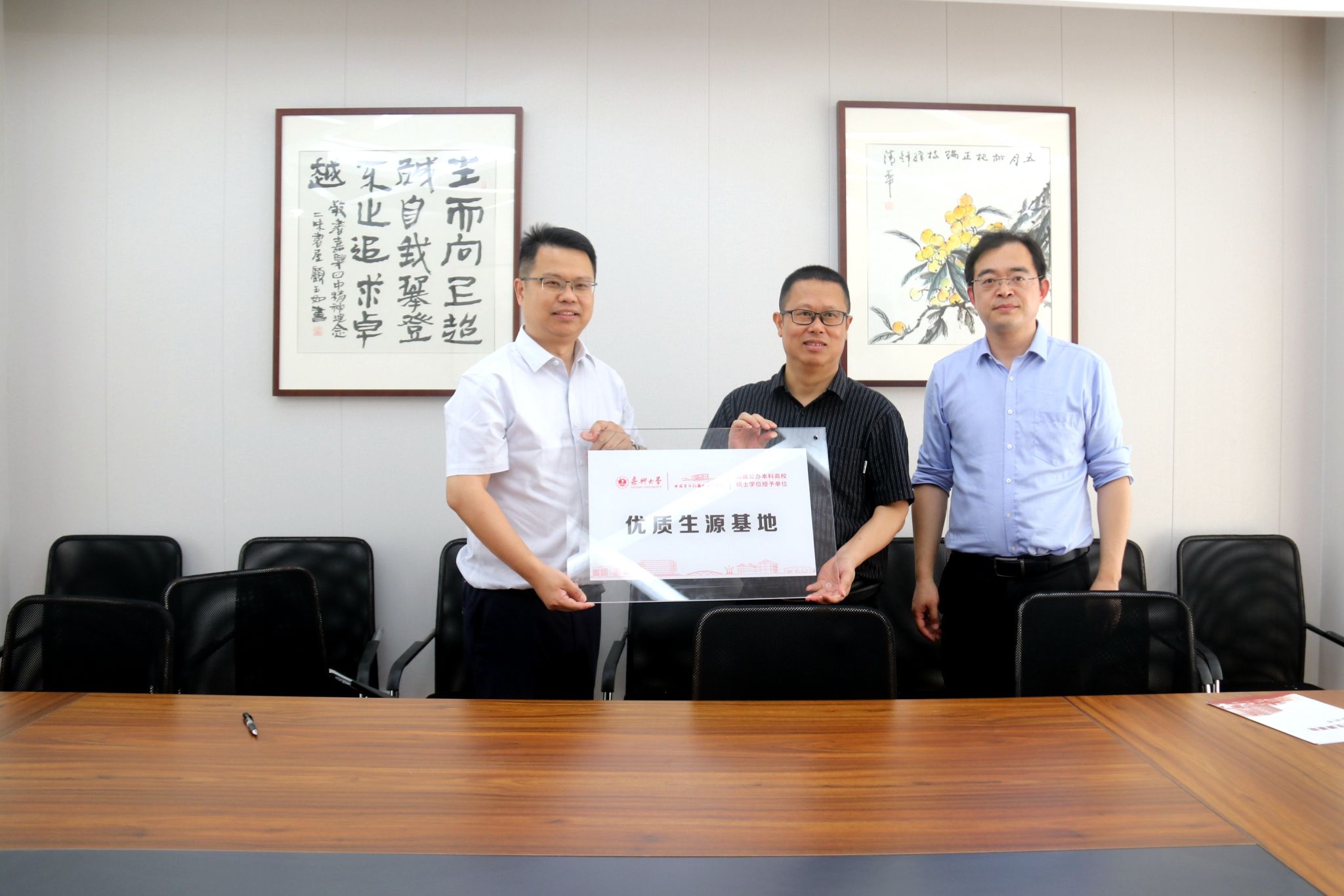 交流结束后,张啸峰代表学校与嘉兴四高共同签署了“优质生源基地合作协议”,并授牌“嘉兴大学优质生源基地”。