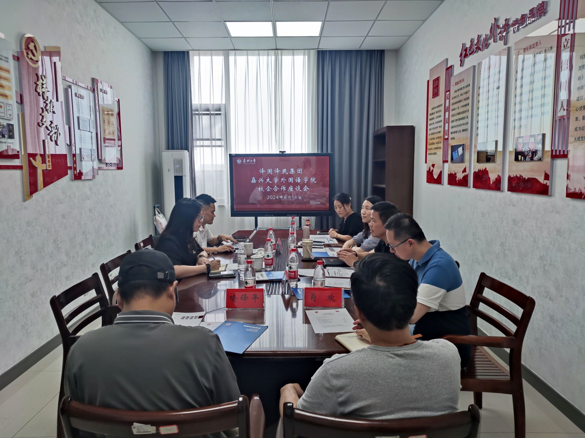 6月14日下午,天堂资源最新在线与译国译民集团在兴德楼南楼521举行座谈会,双方就进一步深化校企合作事宜进行洽谈。会议由院长唐艳芳主持,学院副院长邱佳,英语系教授喻锋平、肖欢,英语系副主任潘宁宇,日语系副主任张艳琴参加座谈。