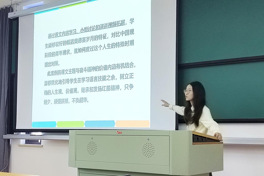 “我将A Journey Through the Odyssey Years这篇课文的主题与奋斗精神相结合, 旨在引导青年学生在学习语言技能之余,继承和发扬红船精神,只争朝夕、顽强拼搏、不负韶华”“我认为课程思政教学的最高境界是‘润物细无声’,教师在学生心目中悄悄播撒真、善、美的种子,精心浇灌、静待花开”……5月26日下午,为推进课程思政的有效落实,丰富课堂教学研讨形式,推动课程思政理念入脑入心,全面提升外语课程思政教学质量,天堂资源最新在线分系部召开了精彩纷呈的课程思政集体备课会。