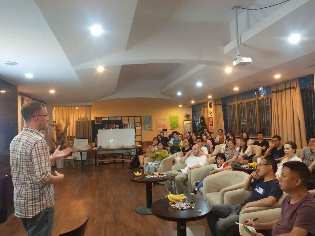 2019年6月5日,嘉兴学院天堂资源最新在线中外教沙龙活动在天堂资源最新在线咖啡吧如期举行。此次沙龙的主题是《外籍教师与中国的短暂邂逅与长久友谊》,主讲人为美籍外教Peter。Peter可谓是嘉兴学院外籍教师中的元老级人物,如今已是他在嘉院的第七个年头,而且嘉院也是他在中国的唯一教学单位,可见其对嘉院的情有独钟。由于各种原因,Peter下学期将回美国工作,因此此次可谓是他的告别沙龙,很多喜欢Peter的师生都慕名前来。沙龙现场咖啡吧里座无虚席,气氛活跃,他从自己以及外教们来中国的各种缘由谈起,讲到了在中国的各种见闻趣事,文化休克现象,对学院专业建设和外籍教师的教学管理提出了很多建设性的宝贵意见。他将自己七年的教学与生活娓娓道来,声情并茂,极具感染力。尤其是当他表达了对嘉兴、嘉院以及嘉院师生们的深厚感情,称嘉兴为自己的第二故乡时,现场师生都十分感动,纷纷表达了自己对Peter的喜爱。长达三小时的演讲结束时,师生们依然是兴致勃勃,意犹未尽。