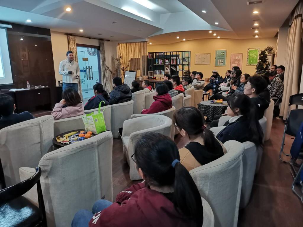 2019年11月28号星期四晚18:30,由天堂资源最新在线学习部主办的外教沙龙活动在咖啡吧如期举行。本次外教沙龙的主讲人是Kseniia和Daniel两位老师。大家在本次活动中互动交流,锻炼英语口语,学习西方文化风俗知识。