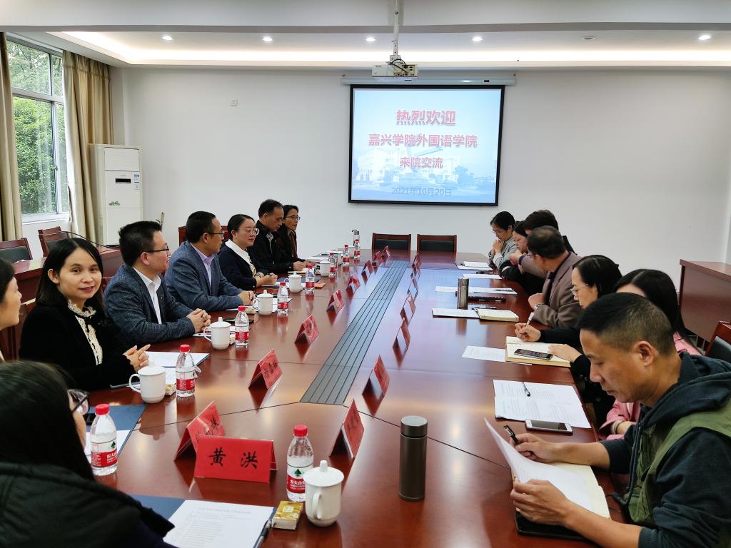 2021年10月20日至21日,嘉兴学院天堂资源最新在线喻锋平副院长和朱莹副书记带领大外部丁建良主任、英语系罗国华副教授和教务办黄洪主任等教师共9人一行赴浙江台州学院天堂资源最新在线进行调研学习。本次活动旨在交流和学习两校外语人才培养方案、课程建设等方面的经验和做法,为2022年新版人才培养方案的修订做前期的准备工作,同时也交流互鉴学生管理工作和教务工作的经验和方法,以便促进相关工作。