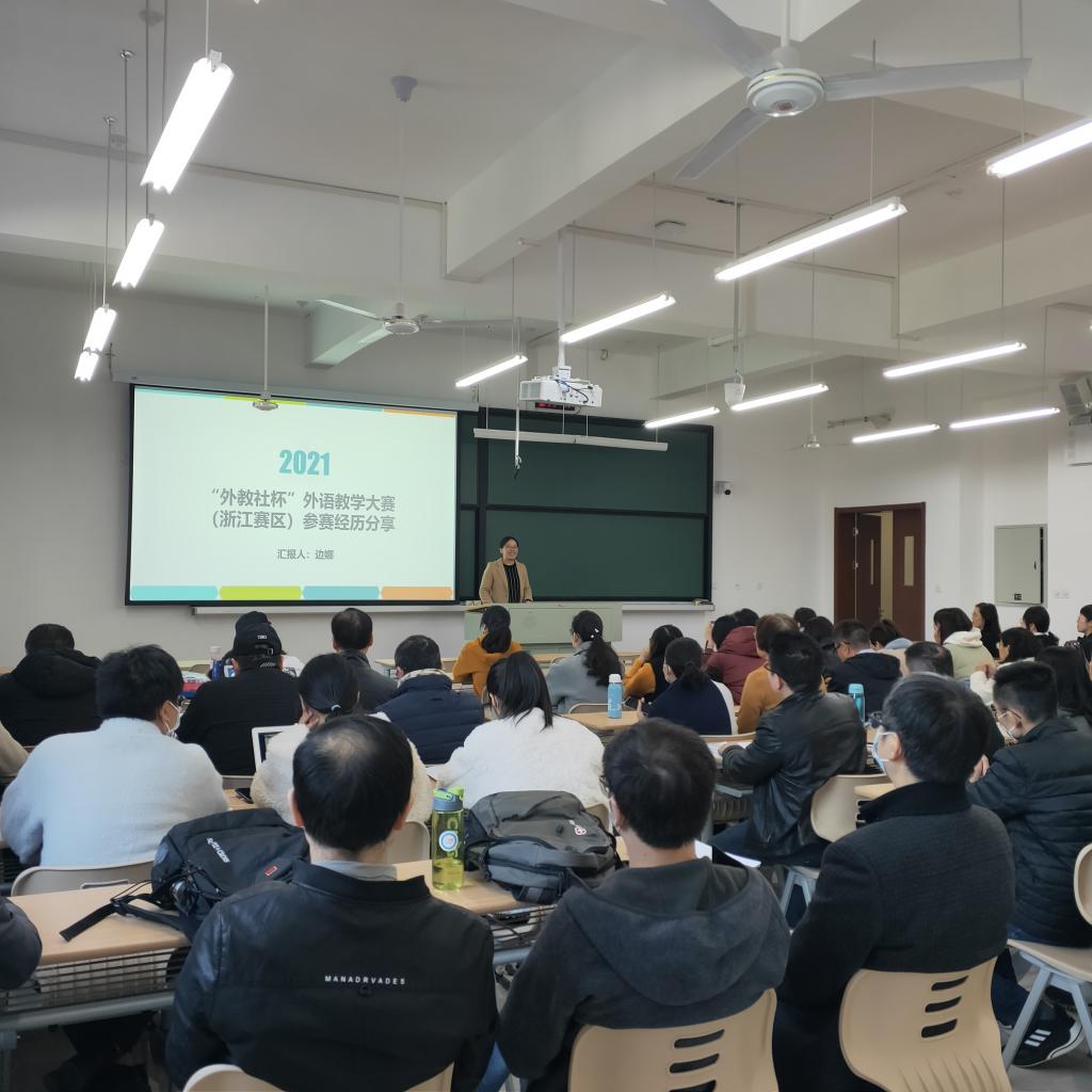 11月11日下午,天堂资源最新在线集中听课评课系列活动继续开展。本次活动特别邀请外教社杯全国外语教学大赛浙江省决赛一等奖获得者边娜老师示范获奖课程,分享教学经验。天堂资源最新在线全体教师现场观摩了边老师示范课程。