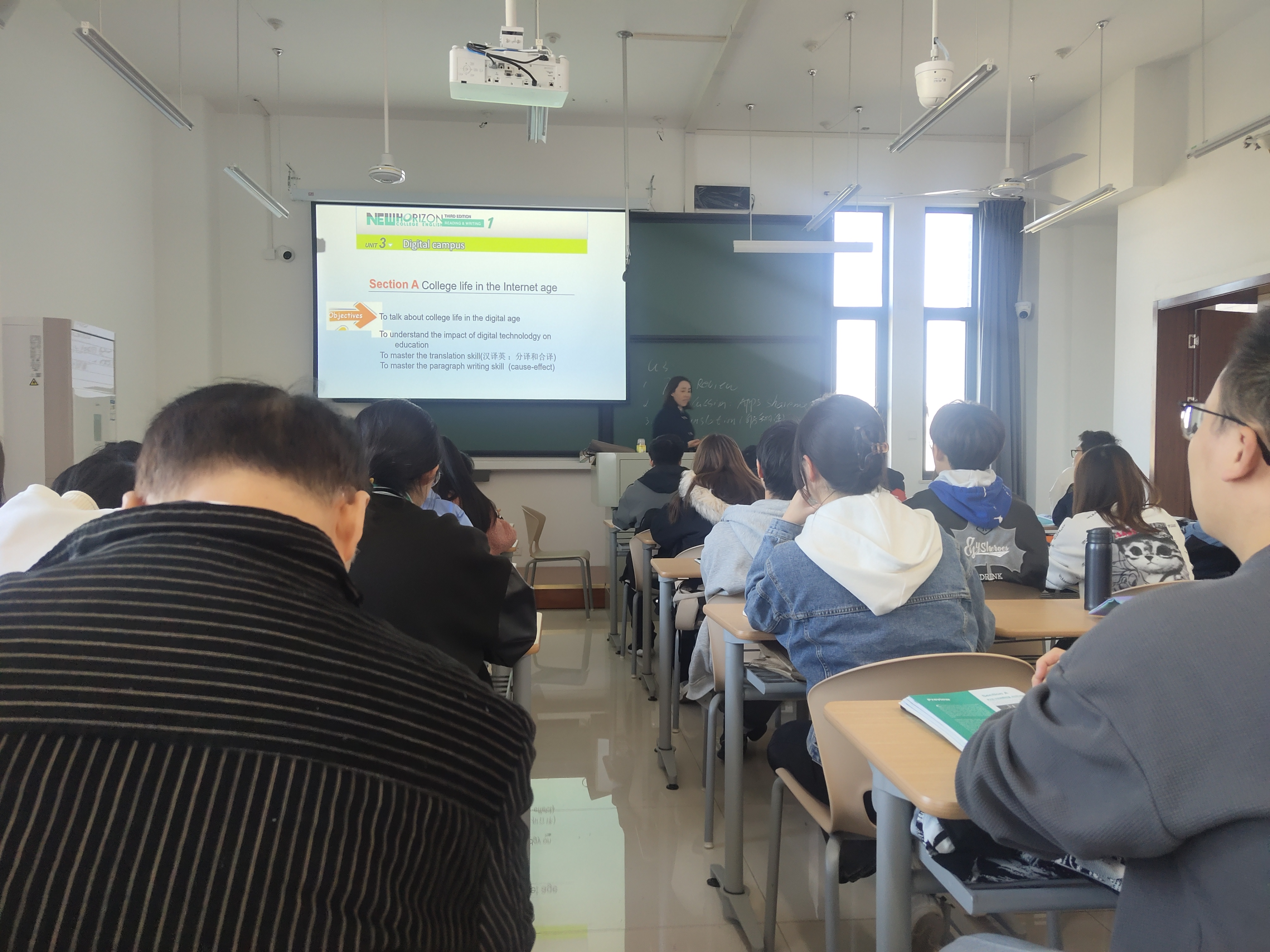 下午第六、七节,学院督导组成员和部分教师代表先后来到大外部路晓琴老师和高晨笛老师的课堂,认真观摩了路老师的《大学英语I》课堂教学以及高老师的《大学英语II》课堂教学。课堂上,两位老师精神饱满,思路清晰,重点突出,课堂气氛活跃,师生互动良好。老师们设计了一系列的课堂语言训练活动,注重培养和提高学生的实际语言运用能力;适时把思政题材融入课堂教学,强化思政育人;对教材知识点进行拓展深化(如介绍贴近学生生活的文化类知识),提升了学生学习英语的兴趣和动力。
