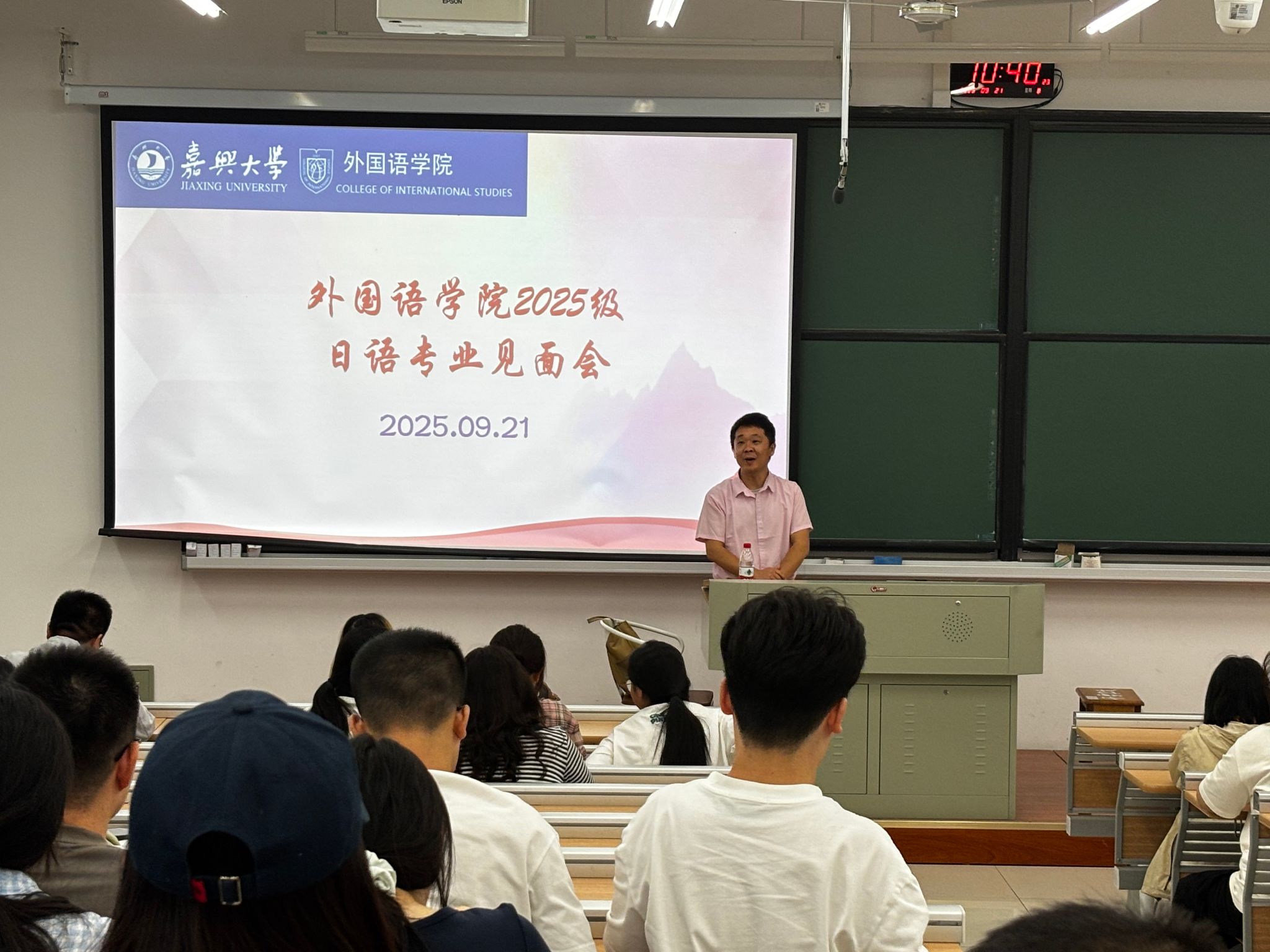 见面会在热情洋溢的氛围中拉开帷幕。董旭阳代表系部全体教师对新生们的到来表示热烈欢迎。他介绍了日语专业的发展历程、培养特色等情况。他指出,学习日语不仅是掌握一门语言技能,更是打开一扇通往多元文化的大门,希望同学们在未来四年中夯实语言基础、深入理解文化内涵、培养跨文化交流能力,成长为有情怀、有视野的优秀外语人才。