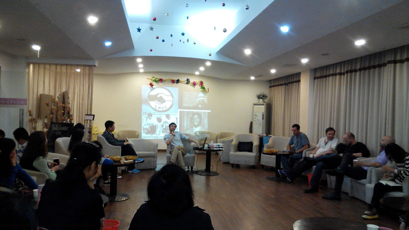 虽然正逢校运会召开之际,但白天角逐运动会的疲累并未阻碍天堂资源最新在线中外教师们交流文化与教学的热情。2015年11月6日晚上六点半,天堂资源最新在线第二期中外教教学沙龙在咖啡吧如期举行。本期沙龙由 Stephen主讲,主题为“A Very Quick Overview of Black and White American History”。他精心选择了大量原汁原味的图片资料制作了PPT,声情并茂地引导大家回顾了美国的历史,从穿着、语言发音、受教育情况、社会流动性、家庭结构、对待政府的态度等多个角度举例说明了美国白人与黑人的不同。Marcus、Caleb、Dave、Jacob等四位外教与二十来名中教不断发问、补充,与Stephen一道探讨相关话题。现场气氛和谐而热烈,沙龙进行到九点左右才结束。中外教及旁听的学生纷纷表示本期沙龙非常精彩,已经开始期待下一期沙龙的到来。
