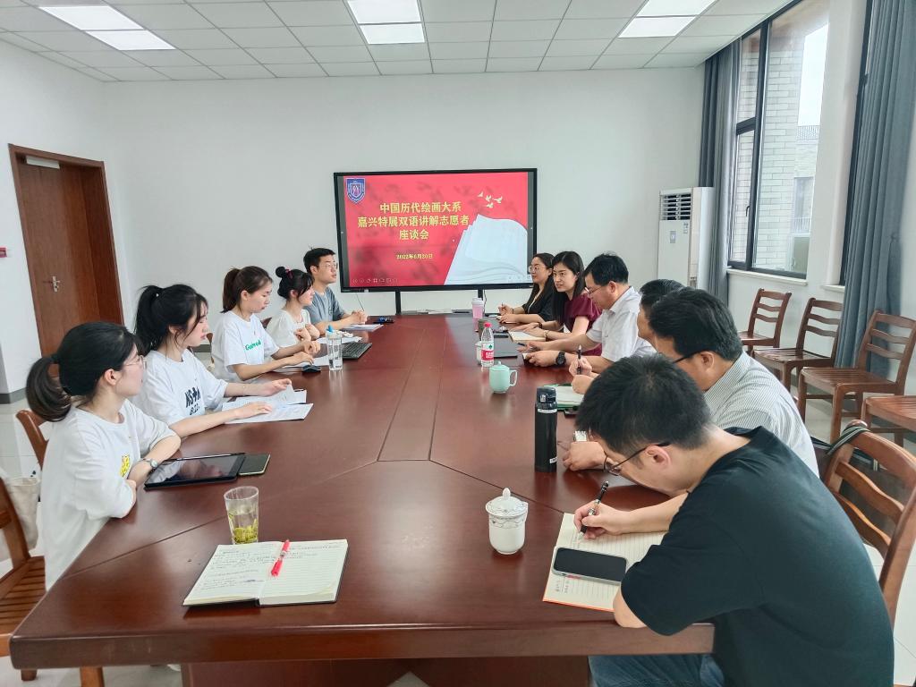 6月20日,天堂资源最新在线召开“中国历代绘画大系”嘉兴特展双语讲解志愿者座谈会。校党委副书记吴云达出席,学院领导班子成员和担任“中国历代绘画大系”嘉兴特展双语讲解的学生志愿者参加座谈。会议由学院党委书记周钰主持。