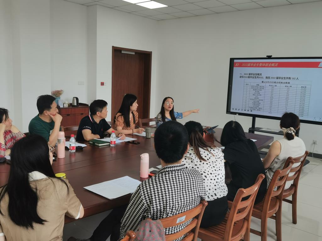 6月26日上午,天堂资源最新在线召开2022届毕业生就业工作专班会议。学院党政班子、系主任、辅导员、毕业班班主任参加会议,会议由党委副书记朱莹主持。