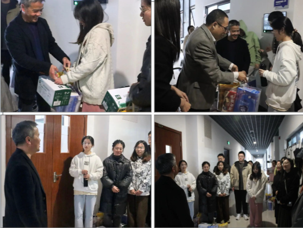 随后,毕业班班主任及辅导员还前往图书馆、寝室等地为考研学子送上“加油包”和问候,给予祝福与鼓励。同学们收到暖心礼物后纷纷表示,将把握好最后的冲刺阶段,全力以赴,以饱满的精神状态迎接考试。