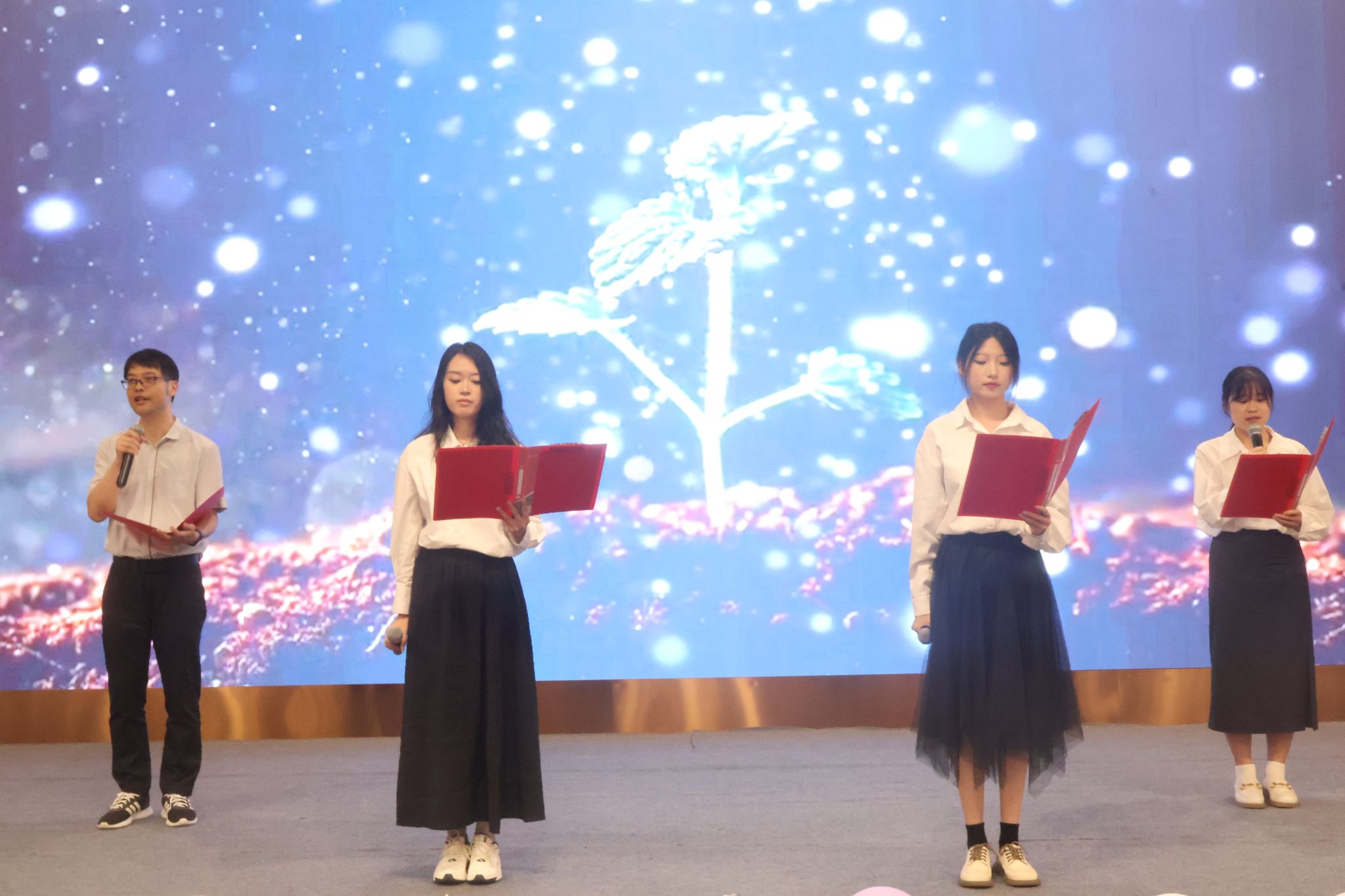 不负嘉大,不负韶华。教师代表鲁俊丰、张艳琴老师分别为毕业生们送上祝福:在未来的道路上学会“悦纳”自己,常回“嘉”看看。毕业生代表陈雪菲代表全体2024届毕业生表达了对老师与同学的深厚情谊与对未来嘉大的美好祝愿。