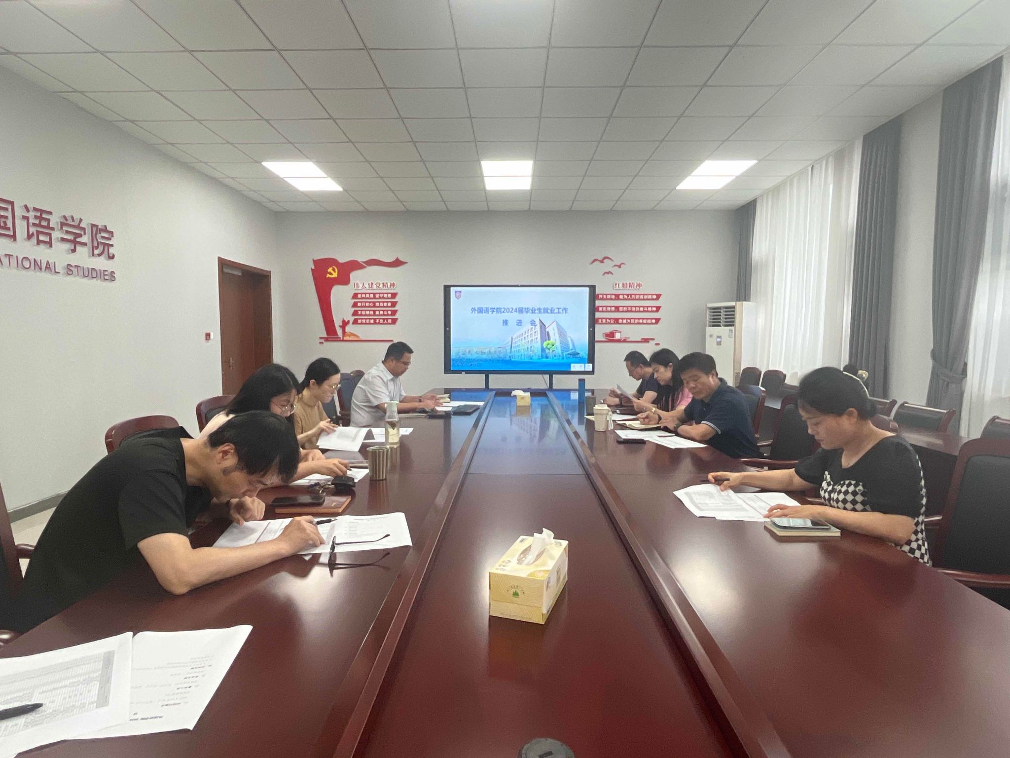6月30日,天堂资源最新在线在兴德楼南楼516召开2024届毕业生就业推进会。学院党政领导、系主任、2024届班主任、辅导员参加会议。党委副书记张啸峰主持会议。