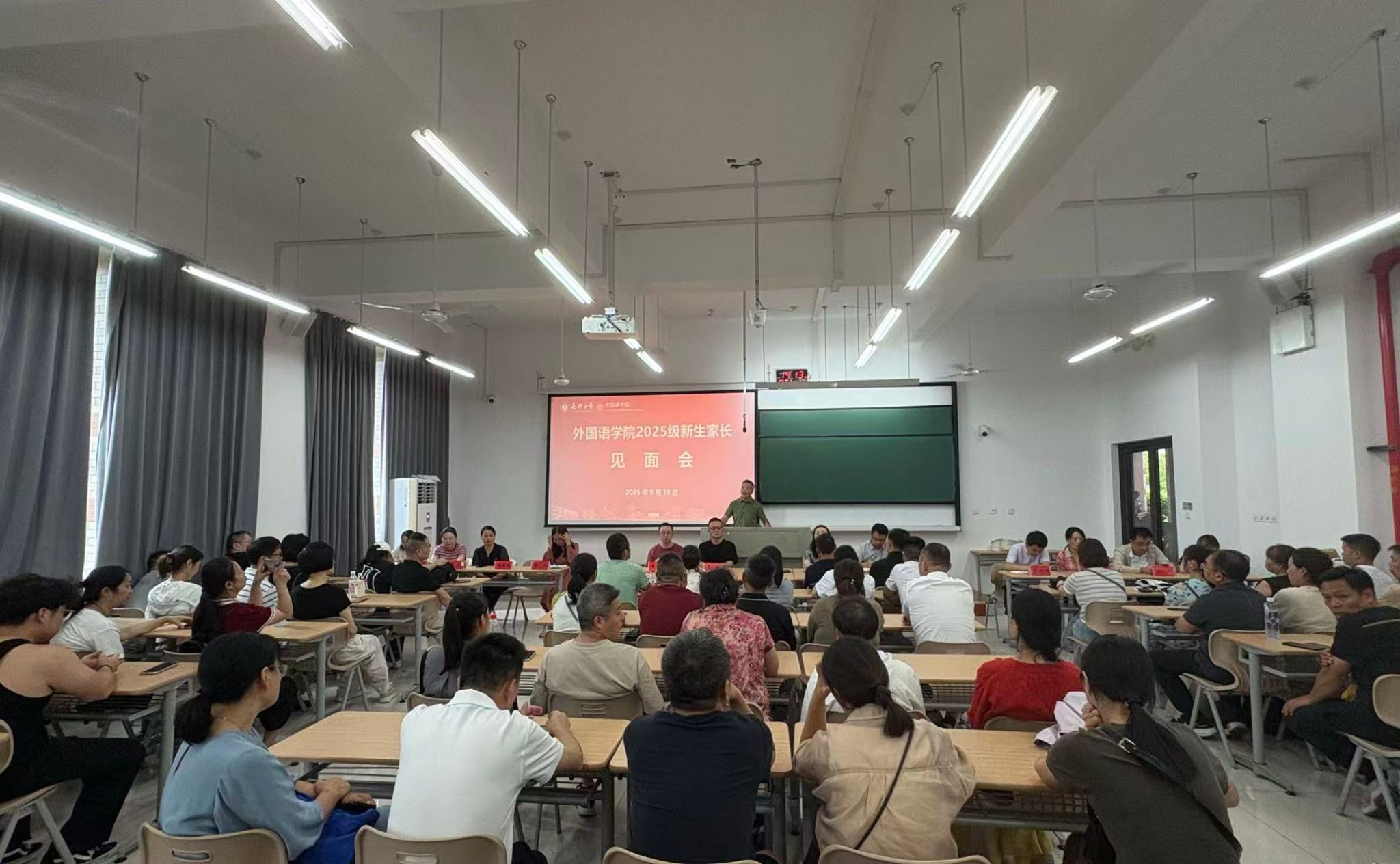 9月18日下午,天堂资源最新在线在兴德楼南楼123会议室举行2025级新生家长见面会。学院党政领导班子成员、各系主任、2025级新生班主任、辅导员与新生家长共聚一堂,共商家校协同育人。见面会由学院党委副书记张啸峰主持。