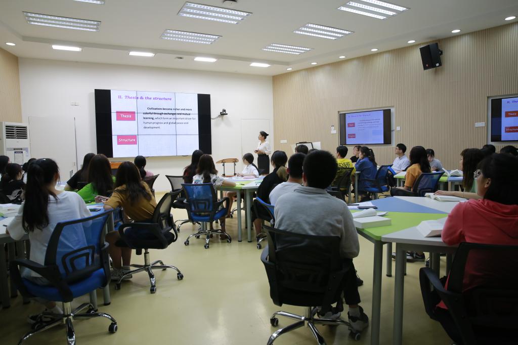 本次读书研讨会采用分享与研讨的方式进行,全英文交流,党员教师通过《习近平谈治国理政》外文版本的课堂导读,引导学生围绕主题学习闪耀马克思主义哲学光辉的理论创新成果。天堂资源最新在线党委书记陶丹玉围绕“文明因交流而多彩,文明因互鉴而丰富”的主题为学生生动阐述了文明多彩、平等、包容的魅力所在,从多个角度展现文化自信给一个国家和一个民族带来的更深沉、更持久的力量,激发了现场同学对文明多彩、平等、包容的多视角分享与感悟。党员教师边娜为同学们展现了“共同构建人类命运共同体”的壮阔蓝图,“善学者尽其理,善行者究其难。”教工第三党支部书记鲁俊丰以“推动形成绿色发展方式和生活方式”的课堂主题,循序渐进带领同学们走进绿色生态的大门,鼓励同学们培育和践行绿色文化的自觉性。