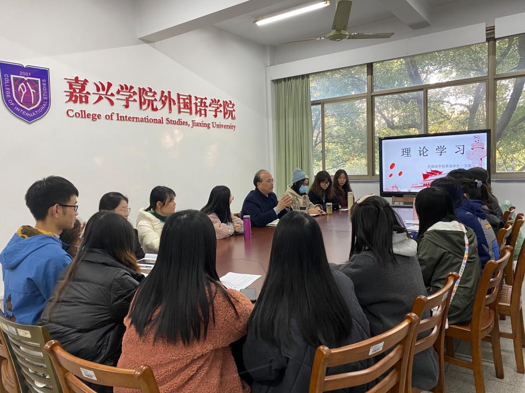 2020年12月4日下午3点半,嘉兴学院天堂资源最新在线英语学生第一党支部在嘉兴学院越秀校区外语楼204会议室开展了支部的理论学习会。本次学习会由支部书记胡笳丽主持,联系英语学生第一党支部的校领导杨培强副校长、英语一支部党员和入党积极分子参加学习会。