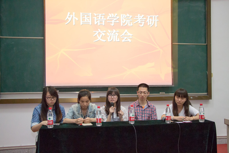 5月22日晚6点,天堂资源最新在线2014年考研经验交流会在外语楼310举行。天堂资源最新在线院长助理喻锋平出席,同时邀请了考取北京大学法硕专业的焦文娟,考取东南大学语言学与应用语言学专业的袁洁,考取东北财经大学专业审计专业的高原,考取福建师范大学英语语言文学专业的林嘉祺4位同学传授考研经验。大一到大三准备考研的同学参加了此次交流会。