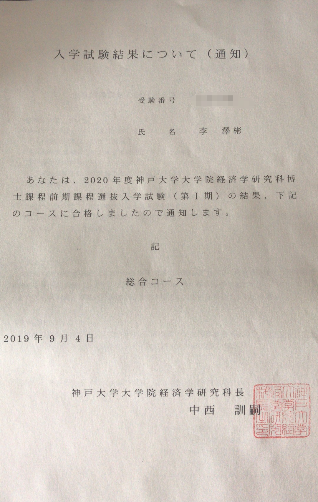 此外,李泽彬还鼓励大家四年里好好学习,争取尝试报考日本大学的研究生,并把自己考入神户大学这件事称为“成功的逆袭”。