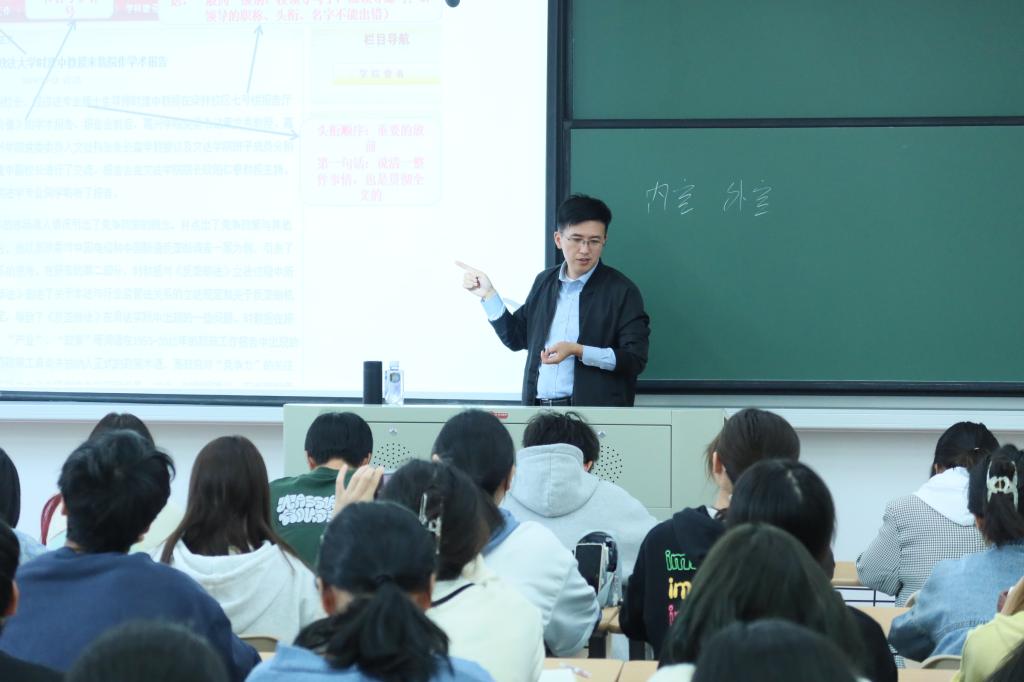 随后,他强调了写通讯稿的常见误区,包括人称和视角的拓展变换、职位头衔的规范格式以及标点符号的恰当使用。同时他结合实际情况,详细列出了写稿的具体注意事项,突出写稿时间和标题的规范性,引发了同学们的深刻思考。