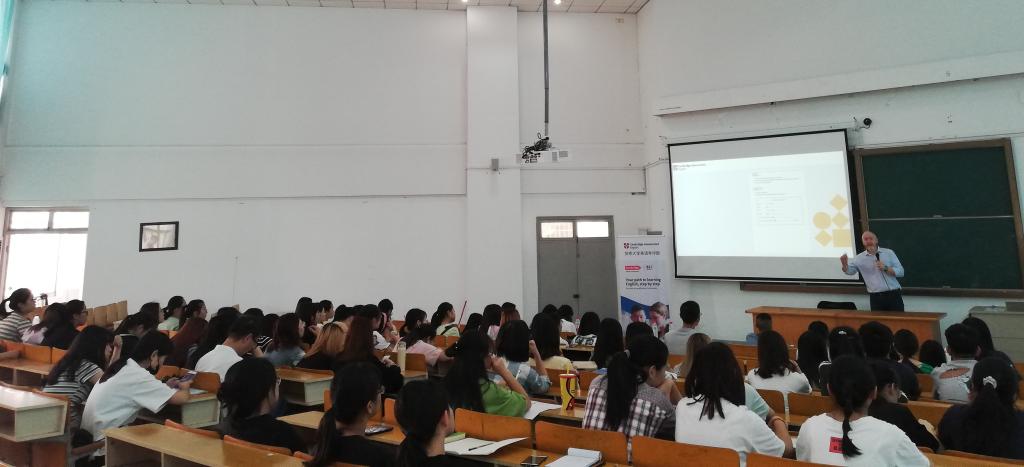 2019年9月19日下午,剑桥大学BEC全球主管Ian Cawley先生,在剑桥大学英语考评部华东负责人李明先生和东亚区测评服务经理毕诗惠女士的陪同下,莅临嘉兴学院作客天堂资源最新在线社会培训与服务中心,并应邀在外语楼310为嘉兴学院学生做了一场精彩的讲座。讲座由BEC嘉兴学院考点负责人黄洪老师主持,来自校内外的百余名考生和英语爱好者到场参加。