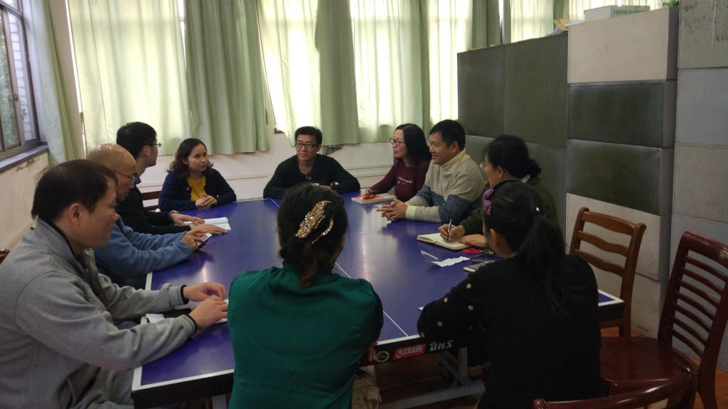 然后,支部党员针对近期学校的重中之重——迎评工作——展开热烈讨论,重点围绕“支部工作如何有机融入迎评”和“党员教师如何助力迎评”两方面展开。杨雪梅同志对迎评工作的重要性发表了看法,她认为作为我校“三步走”的第一步,此次教育评估的结果将直接关系到整个学校未来的发展以及全校师生的切身利益,作为党员教师更应有忧患意识,应将压力化为动力,以最饱满的精神状态投入到迎评工作中去。贺文照同志从党员教师如何利用好“雨课堂”这一软件从而提升教学质量和效果的角度分享了自己的经验,他鼓励党员老师应学会并利用现代化的教学手段和平台,这是未来教育发展的趋势,也将是评估本科教育质量高低的一种体现。全体党员还讨论了如何以本次迎评为契机,对系办公室进行一轮美化和布置,这不仅可以改善大家的工作环境,更能够对外展示英语系的人文情怀和活力。刁俊春同志提议可以选择一些跟专业密切相关的名人名言作为美化办公室的素材之一,党员老师可以利用业余时间收集相关的信息,经筛选后统一制作和张贴。