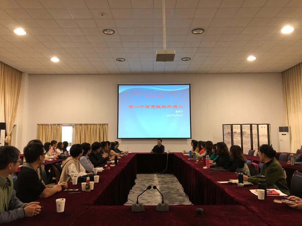 唐艳芳强调,要做一个有党性的外语人,必须做到以下四点:第一,必须做一个有知识、会学习的人。第二,必须有强烈的民族意识和使命感。第三,必须把党性和外语人的专长特长结合起来。第四,必须直面问题、检视问题,并整改落实到位。