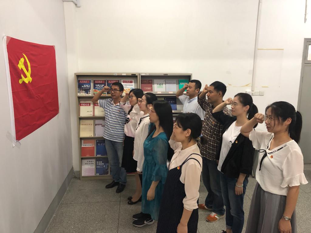 2019年10月11日下午,天堂资源最新在线第三教工支部在外语楼204会议室开展“六个一”主题教育党日活动,内容包括重温一次入党誓词、学习一次党章、看一次展览。