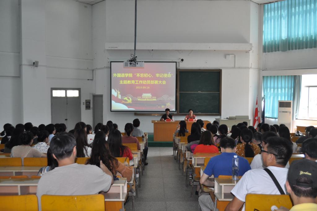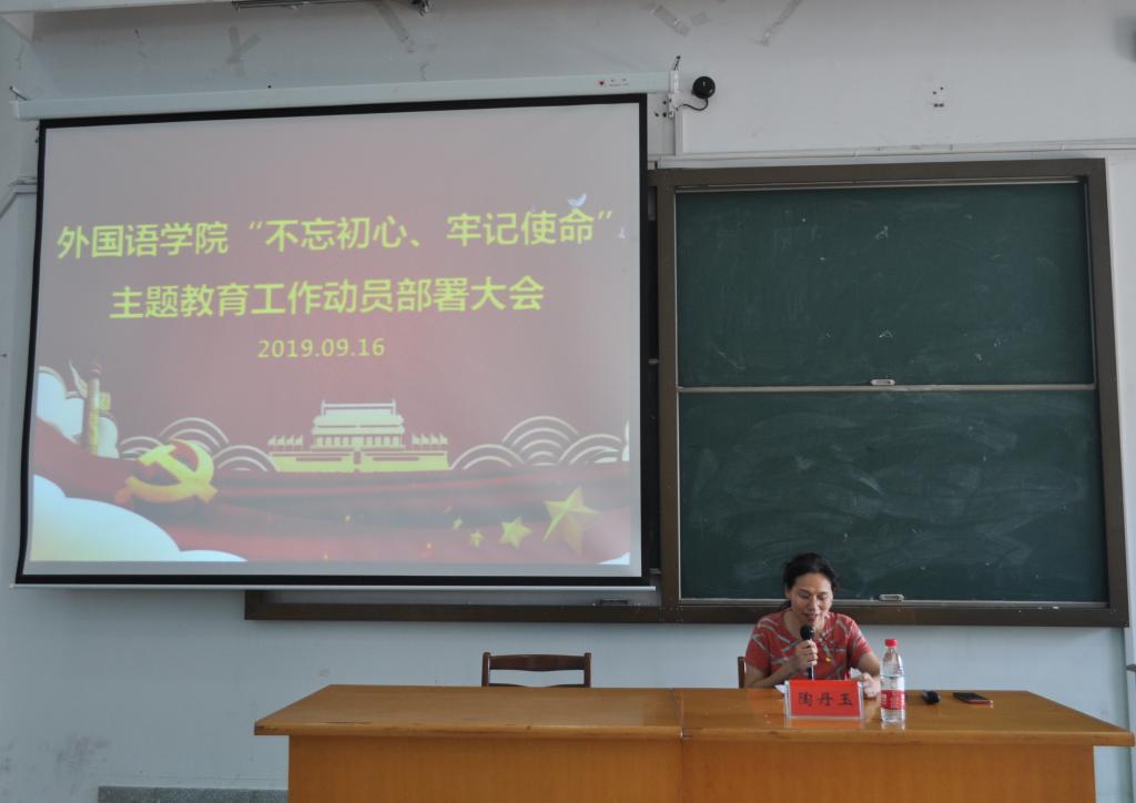 9月16日中午,天堂资源最新在线在外语楼310召开“不忘初心、牢记使命”主题教育工作动员部署大会,深入贯彻落实中央和上级党委主题教育相关会议精神,特别是习近平总书记和省委、市委、学校党委领导的重要讲话精神,对学院开展主题教育进行全面动员部署。校党委组织部副部长、嘉兴学院“不忘初心 牢记使命”主题教育领导小组材料组组长张向阳参加了会议。院党委副书记、院长唐艳芳主持,院党委书记陶丹玉做动员讲话。