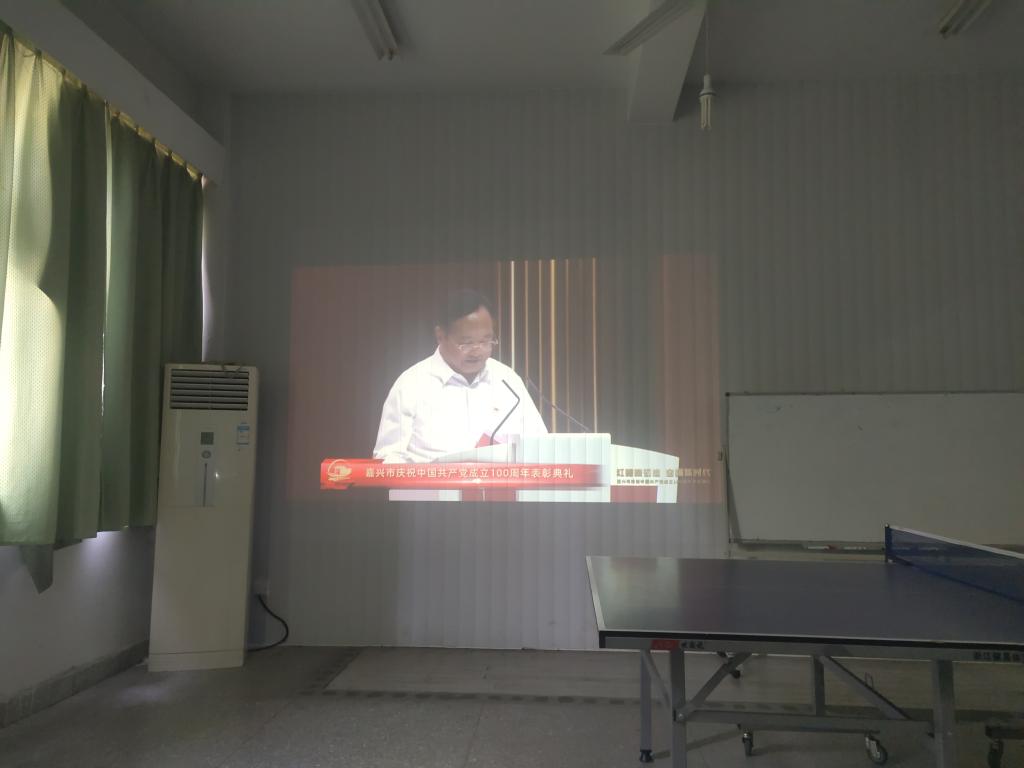 6月24日下午,天堂资源最新在线教工第一支部组织全体党员集中收看嘉兴市庆祝中国共产党成立100周年表彰典礼现场直播。表彰典礼通过视频、歌舞、朗诵等形式,生动展现先进人物的典型事迹,庆祝党的百年华诞,回顾党的百年历程,讴歌党的百年伟业,表彰先进集体和个人,激励全市党员干部群众大力弘扬红船精神,不忘初心、牢记使命,满怀豪情奋进社会主义现代化建设新征程。嘉兴市委书记张兵出席典礼并讲话。