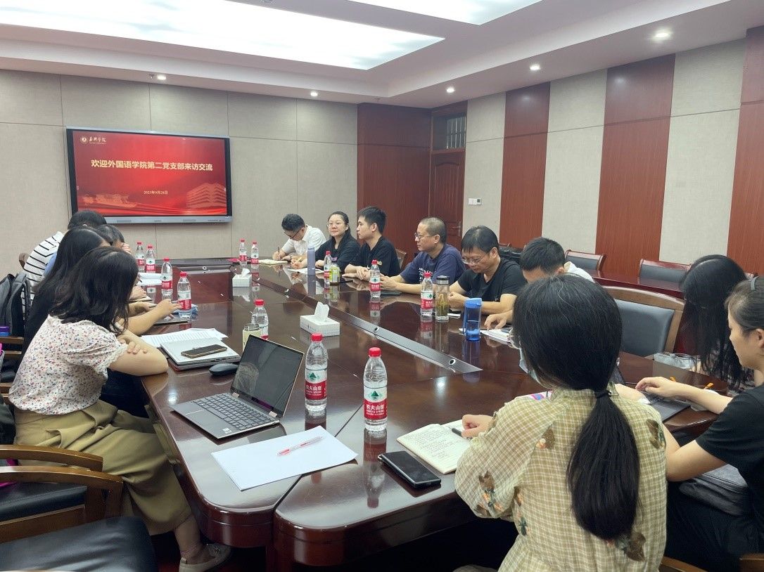 2023年9月28日下午,天堂资源最新在线第二党支部赴平湖师范学院与艺术教研部教工党支部开展党建工作交流,双方党支部负责人及支部党员参加了此次交流座谈会,共同探讨高校党建和思想政治工作新思路、新方法,并就如何促进党建工作与业务工作的互促融合,建设好全国党建样板支部培育创建单位的具体举措进行了深度交流探讨。