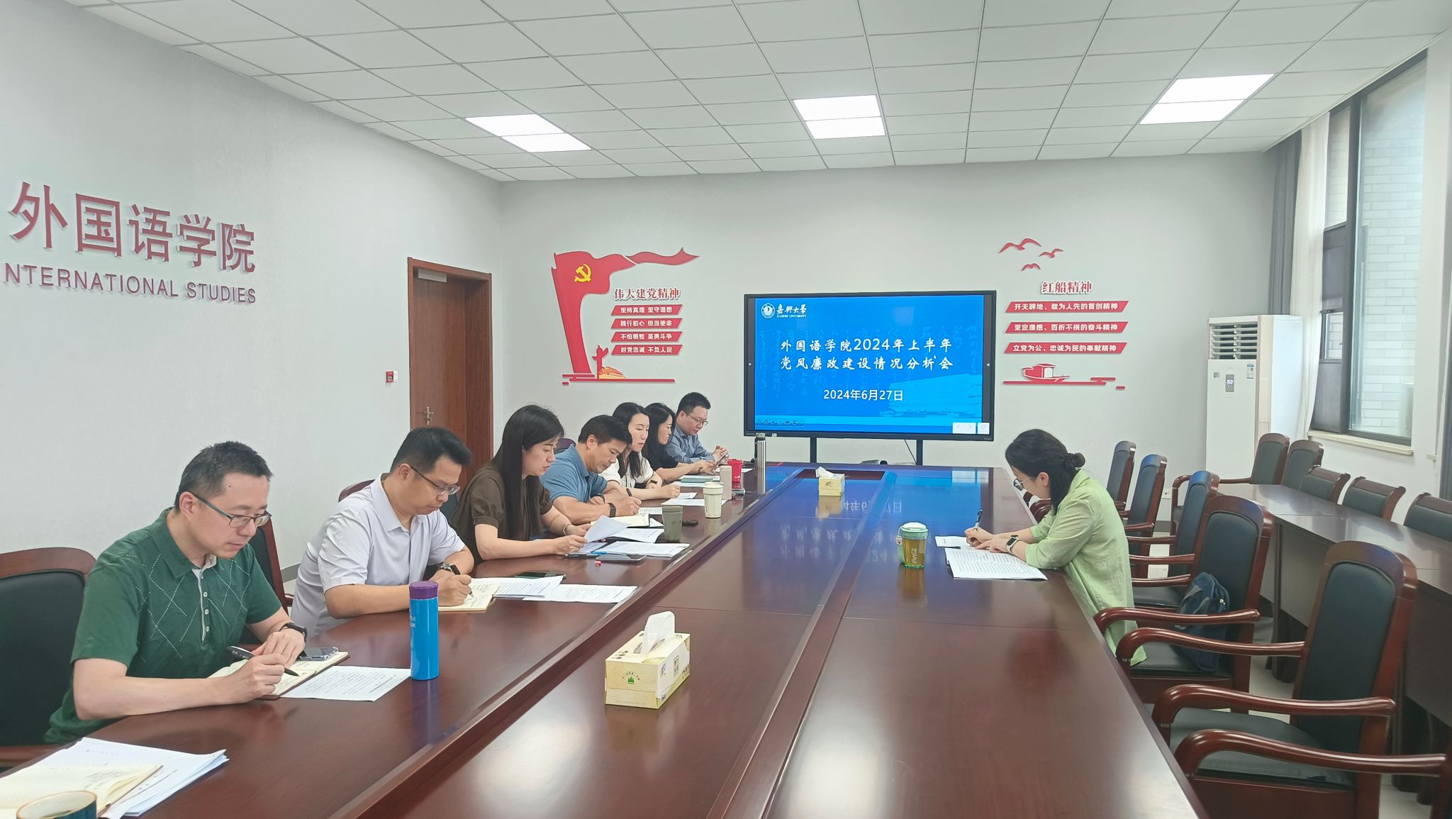 6月27日下午,天堂资源最新在线在兴德楼南楼516会议室召开2024年上半年党风廉政建设情况分析会。会议由学院党委书记周钰主持,纪检监察室(巡察办)副主任杨碧瑜到会指导,学院党政领导班子成员、党委委员等参加会议。