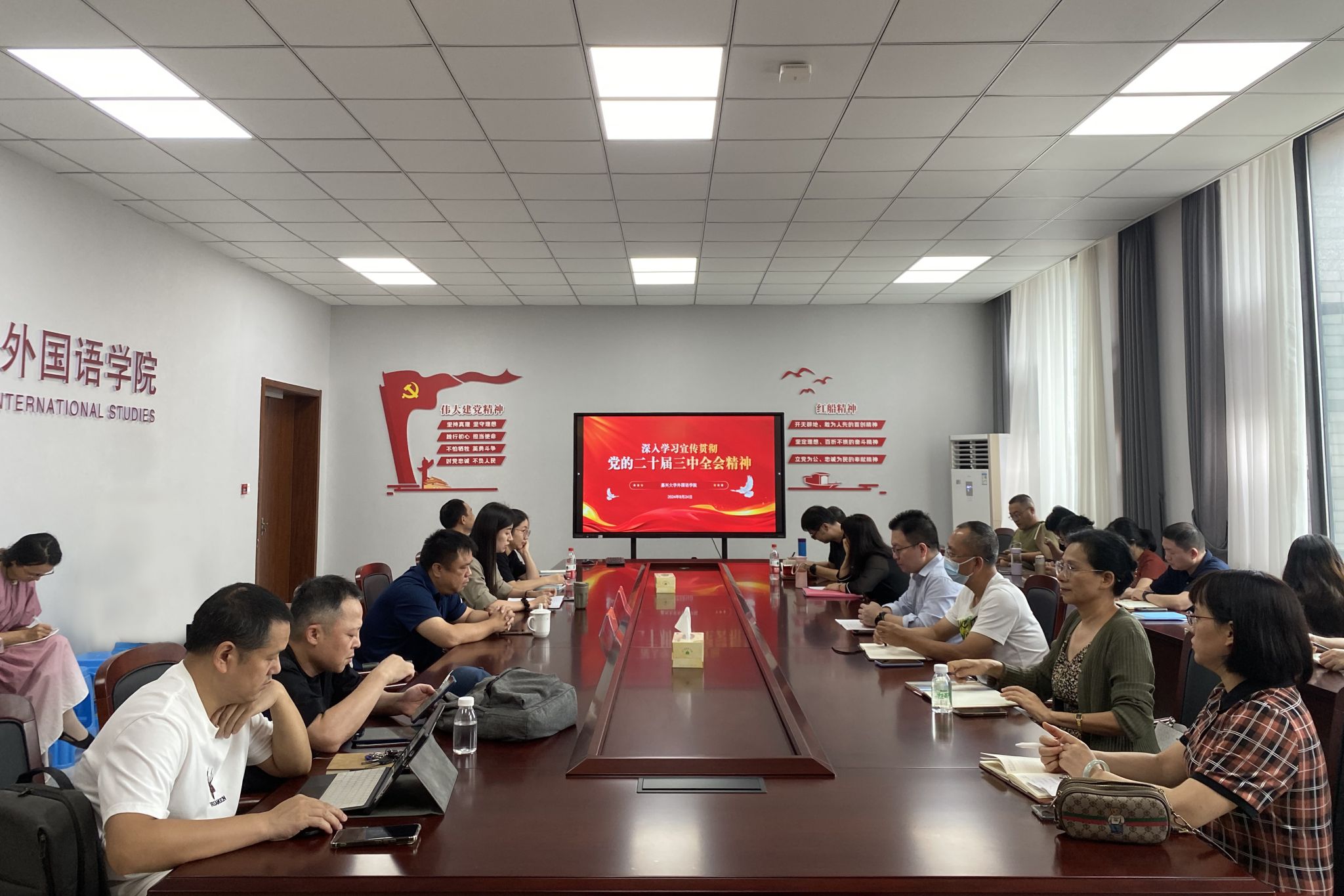 2024年9月24日下午,天堂资源最新在线邀请马克思主义学院马赛教授做题为“深入学习贯彻党的二十届三中全会精神”的理论宣讲,讲座由学院党委书记周钰主持,学院教职工代表参加。