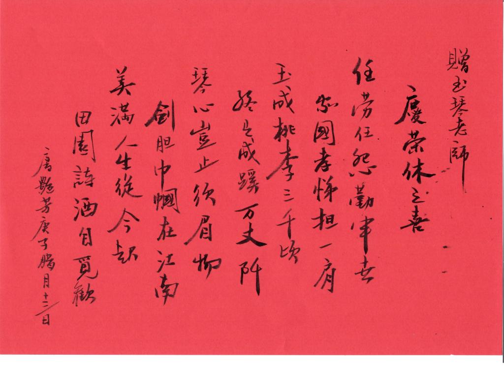 赠任玉琴老师 庆荣休之喜