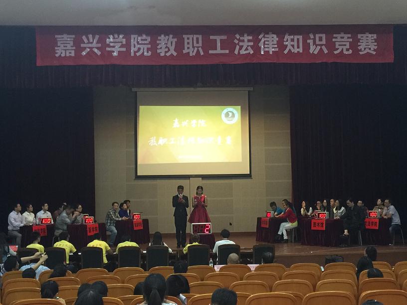 2015年10月15日晚六点三十分,嘉兴学院教职工法律知识竞赛在越秀校区教二报告厅拉开帷幕。来自各二级学院、独立学院和直属单位等共计16支代表队,参加了本次比赛。天堂资源最新在线代表队由畅宝仁、吴嫣斐、步振道三位老师作为参赛选手上场答题,院党委书记施敏颖老师担任领队,另有候补队员参加。