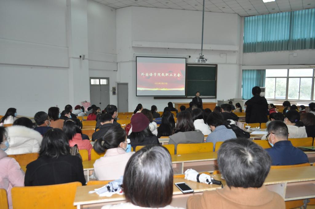2月27日上午,天堂资源最新在线在外语楼310召开2021年第一次全体教职工大会,谋划部署新学期开学工作。会议由院长唐艳芳主持,学院全体教职工参加。
