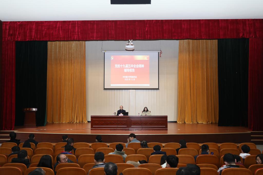 12月17日下午,天堂资源最新在线、建工学院、设计学院在越秀校区教二报告厅集中召开党的十九届五中全会精神宣讲活动。本次活动由杨培强副校长作党的十九届五中全会精神辅导报告,校党委宣传部刘巧芝副部长主持,三个学院全体教职工及部分党员学生代表参加集中学习。