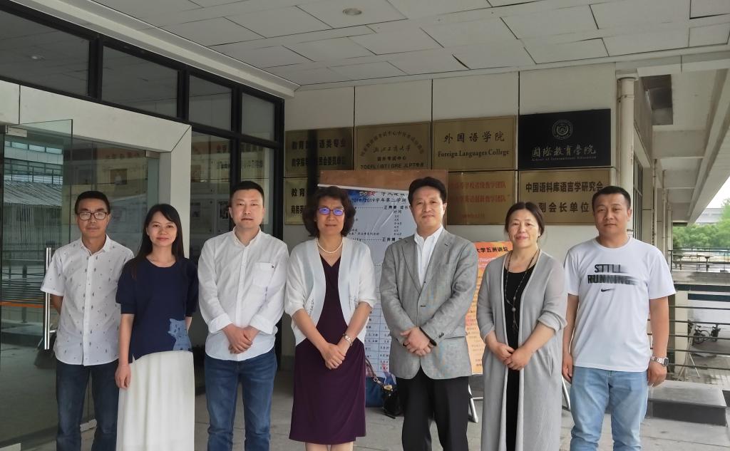 为进一步推进我院专业实训课程改革,实施校企合作课程的建设,不断提升语言实训设施水平和功能,积极践行学校申硕创大工作部署,5月30日,副院长郭永恩、英语系主任杨泓、实验室主任孙彦武、日语系副主任孙玉慧和大外部教研室主任章剑飞一行5人前往浙江工商大学天堂资源最新在线调研学习。