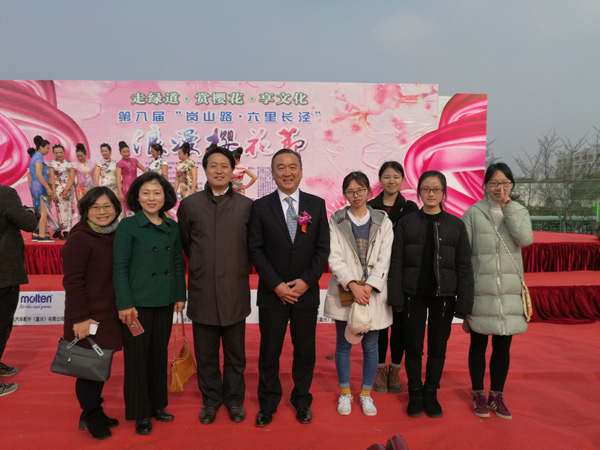 3月25日,嘉兴“第八届樱花节”在岗山路六里长泾盛大开幕,我校外事处李月顺副处长、延梅花老师、我院郭永恩副院长以及日语专业大二学生应邀参加。开幕式上,市领导、日本驻沪领事馆以及在嘉日资企业协会代表致辞之后,中国民乐和日式太鼓,大妈街舞和和式伞舞等,各类节目精彩纷呈,展现了一场中日文艺交流的盛宴。节目之余,我院师生与日资企业代表交流甚欢。嘉兴日资企业协会会长青柳昌司在与学生进行了愉快的交流之后表示,希望择机到访我校,通过茶道表演以及建立实习基地等形式进一步深化与我院日语专业的交流与合作。