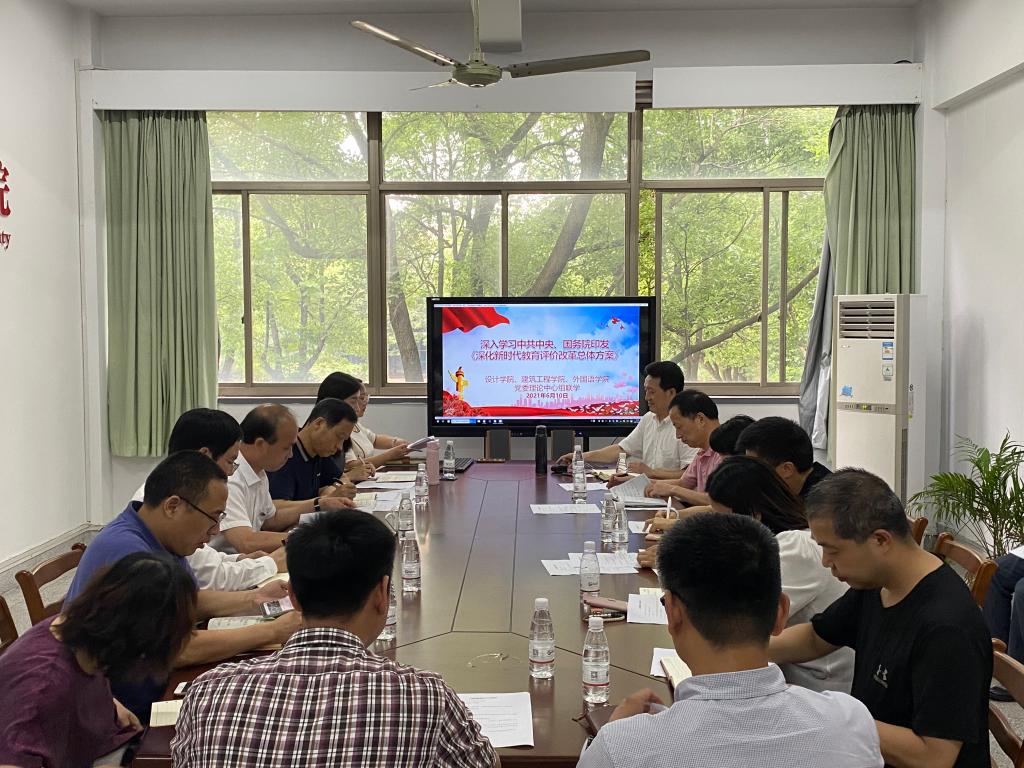6月10日下午,天堂资源最新在线与设计学院、建筑工程学院召开以“深入学习中共中央、国务院印发《深化新时代教育评价改革总体方案》”为主题的二级党委理论中心组联学会。副校长杨培强出席会议,会议由天堂资源最新在线党委书记周钰主持,设计学院院长韦浩、建筑工程学院院长王恩茂、天堂资源最新在线副院长喻锋平分别作主题发言,三个教学单位全体二级党委理论学习中心组成员参加联学会。