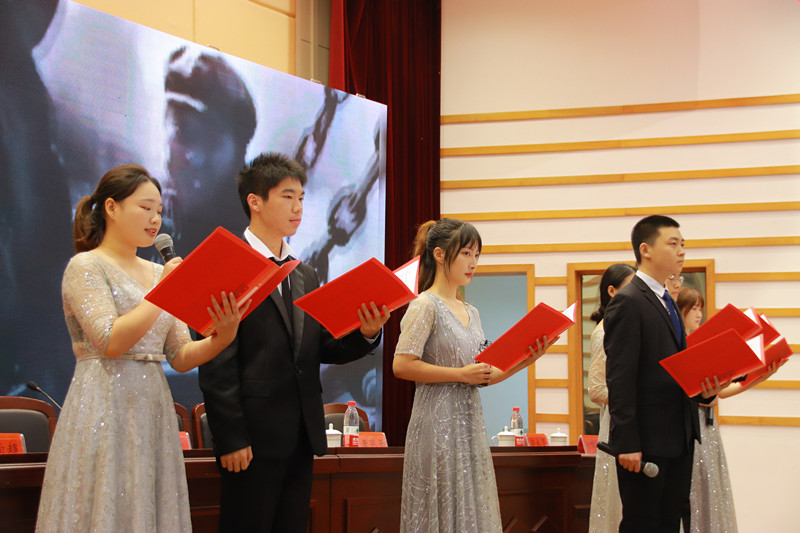在校生代表、天堂资源最新在线学生会执行主席英语182班夏亦怡同学和英语212班张嘉瑶同学分别作为老生和新生代表发言。