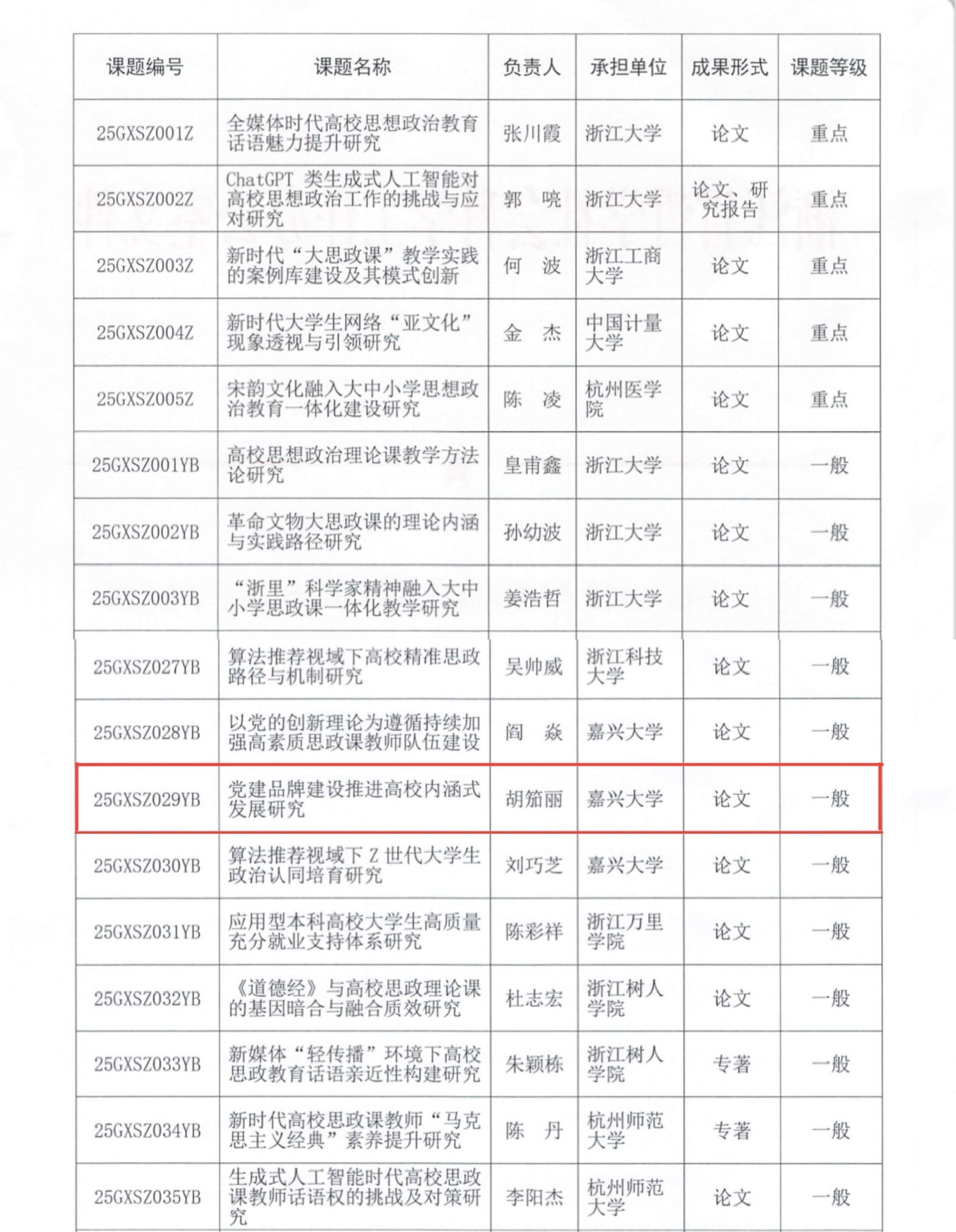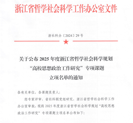 近日,浙江省哲学社会科学工作办公室公布了《关于公布2025年度浙江省哲学社会科学规划“高校思想政治工作研究”专项课题立项名单的通知》。天堂资源最新在线学工办主任胡笳丽主持的课题《党建品牌建设推进高校内涵式发展研究》获得立项。该课题拟梳理目前高校(以江苏、上海、浙江等地的部分高校为调研对象)党建品牌建设情况的最新资料,了解目前高校党建品牌建设推动内涵式发展现状,分析存在的问题,为党建品牌建设推进高校内涵式发展提供可行的建议,为推进高校党建工作提供理论依据与实践指导。