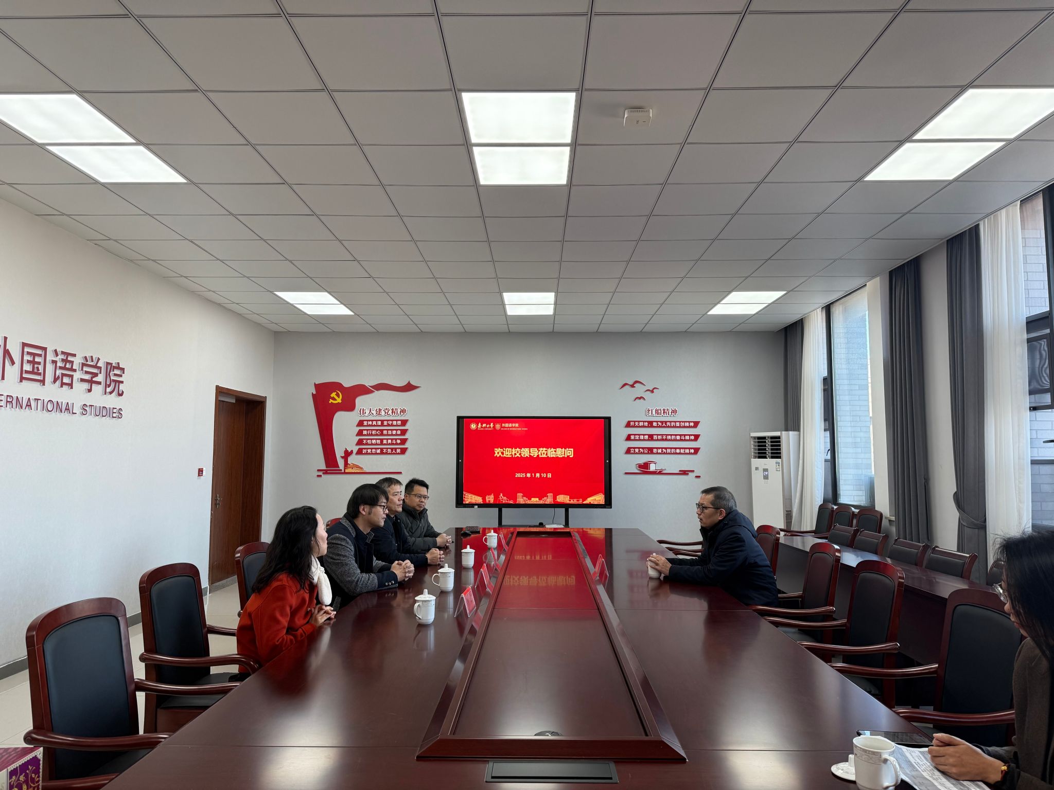 周宏伟与鲁俊丰老师亲切交谈,关心其工作和生活情况,高度赞扬了鲁俊丰老师在学校教育教学、支部党建和为学院发展所作出的努力和贡献,并鼓励他以更大热忱积极投身外语的教育教学和科学研究中去,勇于申报国家级、省部级课题,争取在高级专业技术职称上取得更大突破。他也希望学院教师能够充分发扬教育家精神,以鲁俊丰老师为榜样,立足本职岗位,脚踏实地、勤勉敬业,努力在教育教学上取得新的成绩,在科研创新上取得新突破,成为学生心目中的好老师。