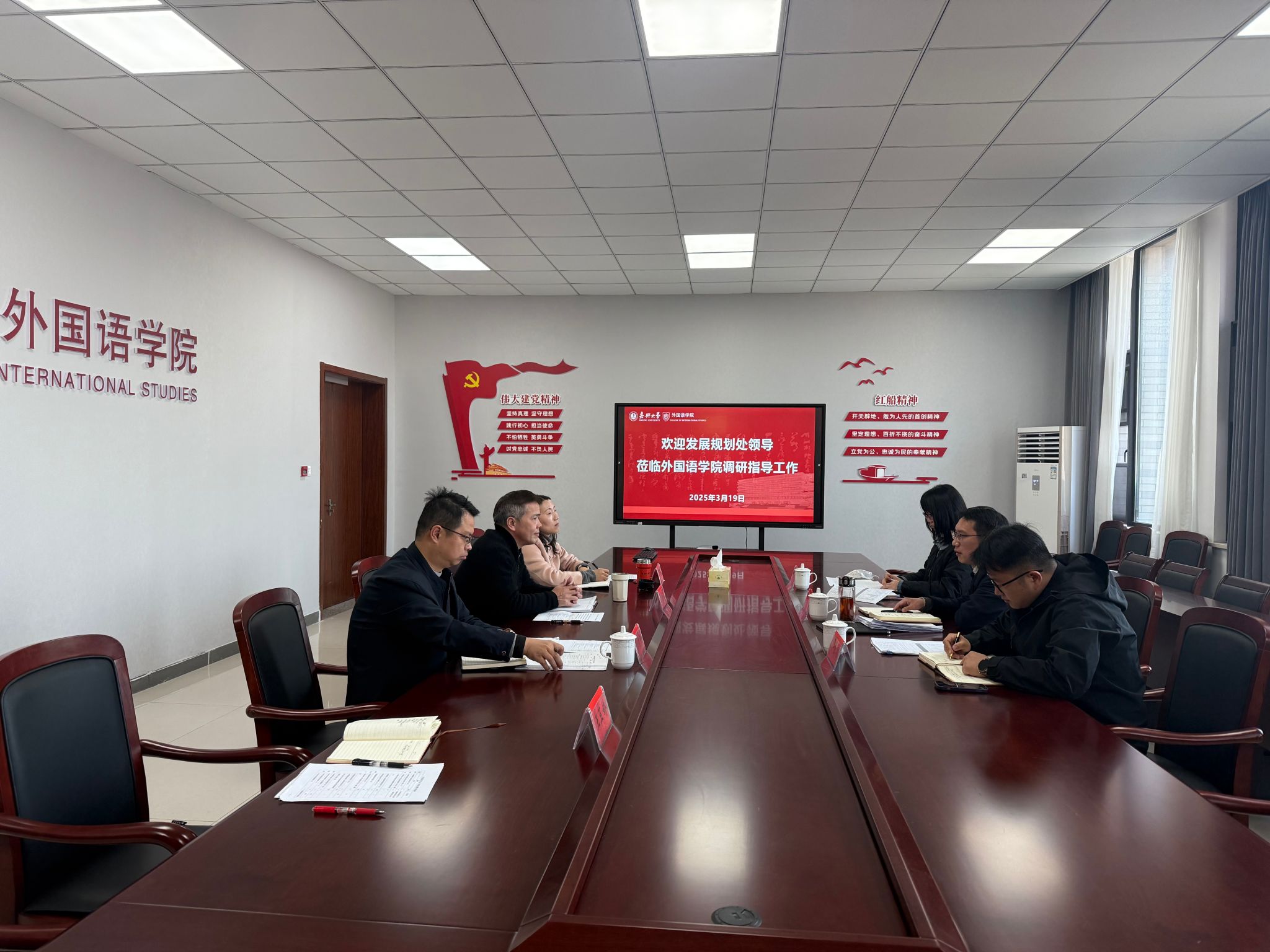 在听取介绍后,张向阳对学院的工作特别是翻译硕士学位点建设工作给予充分肯定,希望学院紧密结合学校整体发展战略,制定“十五五”教育事业发展规划,突出学院办学特色,确保规划的科学性和可行性;要以新一轮岗位聘任为契机深化综合改革,注重改革成果的巩固和拓展,不断提升学院的综合实力;要进一步完善考核机制和绩效分配方案,调动教师的积极性和主动性,充分发挥考核的导向作用,推动学院各项工作再上新台阶。