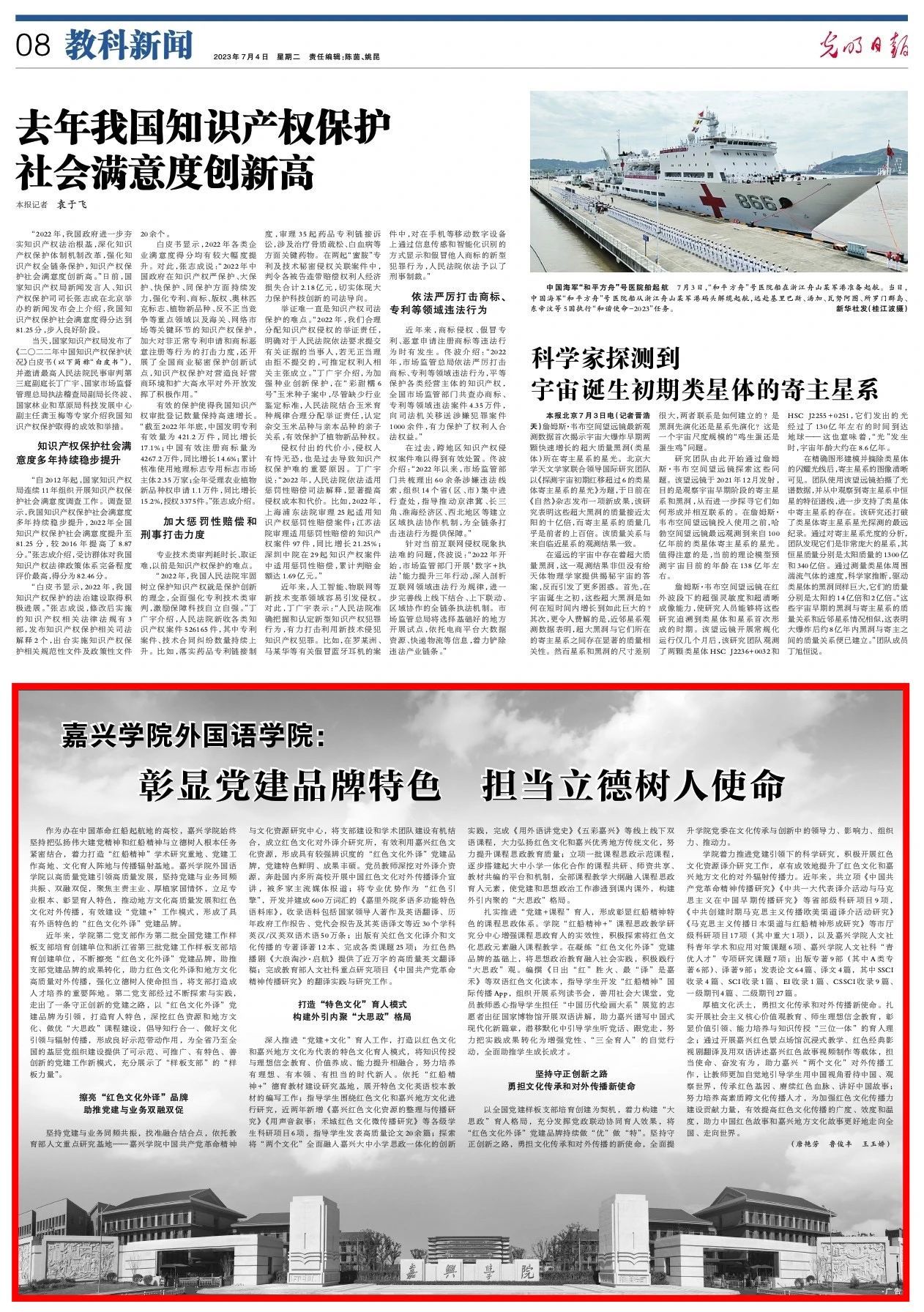 7月4日,《光明日报》刊发《嘉兴学院天堂资源最新在线:彰显党建品牌特色 担当立德树人使命》一文,关注嘉兴学院“红色文化外译”党建品牌。