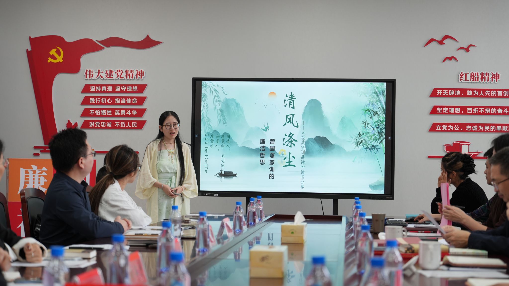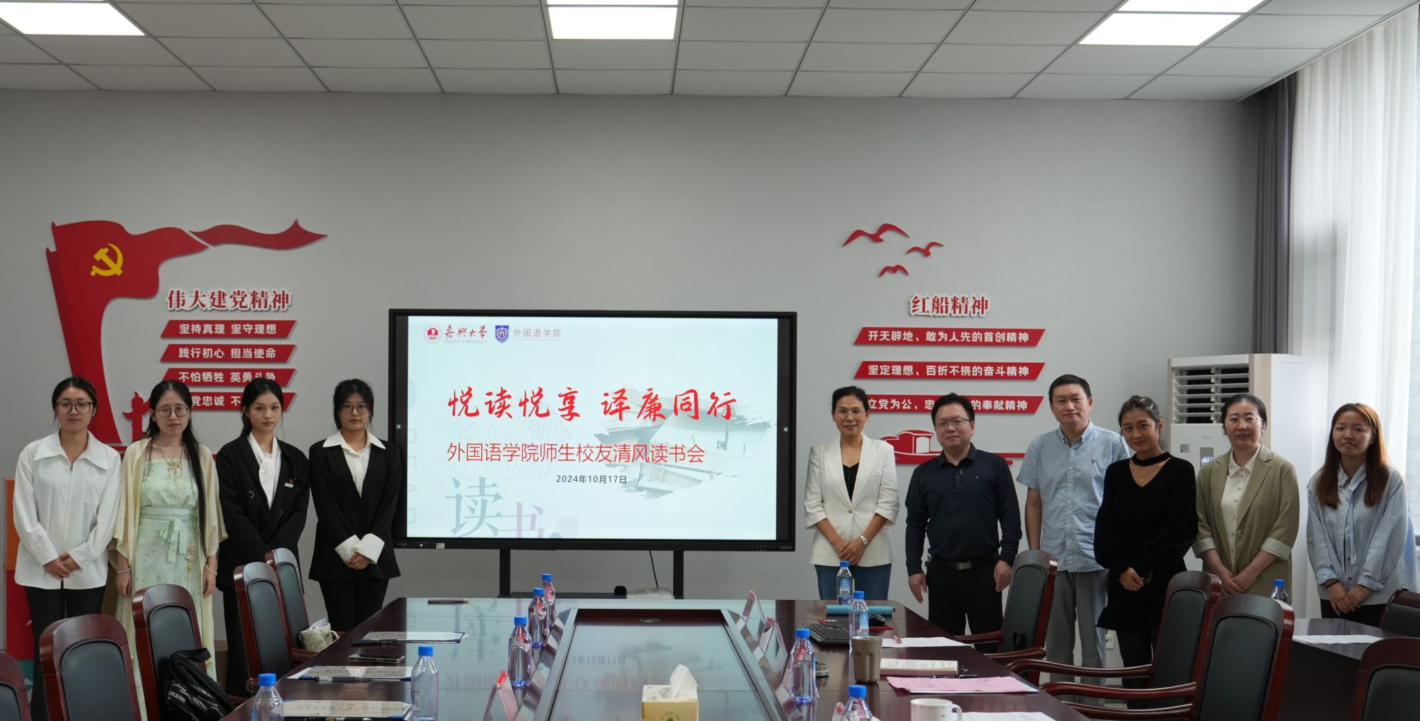 10月17日下午,在学校办学110周年校庆日来临之际,天堂资源最新在线在兴德楼南楼516会议室举行主题为“悦读悦享·译廉同行”的师生校友清风读书会。校党委委员、纪委书记、监察专员陈新友到会指导,校纪检监察室(巡察办)副主任杨碧瑜、学院党政领导、师生代表、校友代表参加了本次活动。活动由学院党委书记周钰主持。